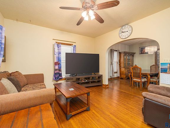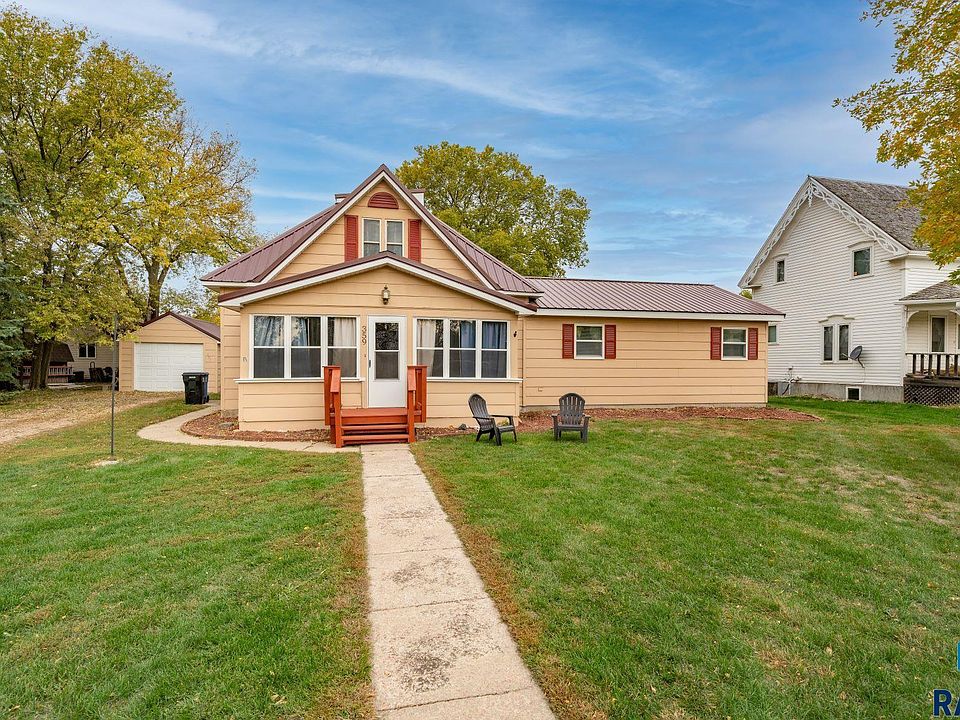 Homeowner's dream has 3 beds, 2 baths on main floor. Upstairs 2 more bedrooms big enough for King beds. Original Hardwood floors & arched doorways are just a snippet of the character. Sip your morning coffee in the screened in porch. Formal dining & built in hutch. Plenty of room to sprawl out and have gatherings with spacious open concept kitchen & 3 pantries. MF laundry room. Extra craft/mudroom. Main Floor Master 12' x 19' near 2nd bedroom. MF 3rd bed has Jack n' Jill entrance to bathroom. Convenient step-in shower, grab bars & 2 seats. Radon mitigation installed. Metal roof on home & garage. Privacy fence. Grill sizzling burgers out on the patio. Room to add garage or park an RV just off the alley. Enjoy annual Turner County Fair - go back in time with carnival rides, 4-H exhibits/livestock & more. Parker motto is: "Life's A Little Bigger In A Small Town." Gift shops, boutiques, car shows, and down-home restaurants. Enjoy the simple life in this sprawling home.