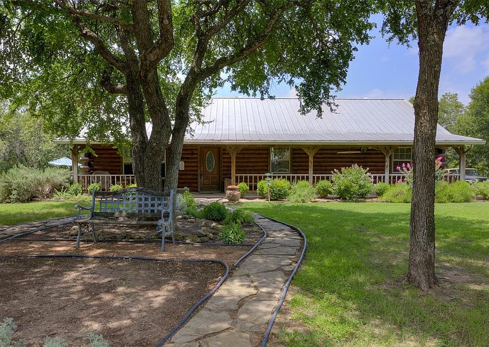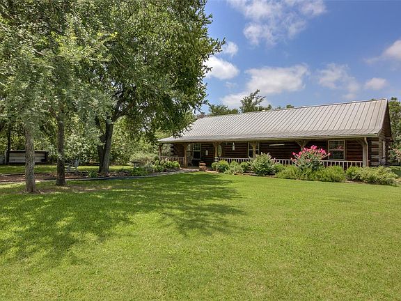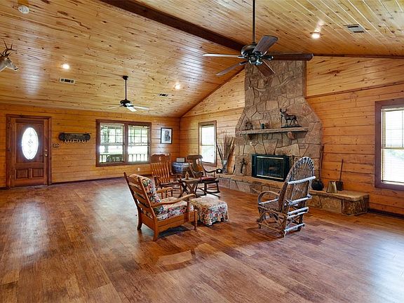 Cabin in the Woods. Rustic 3 bedroom 2 bath Satterwhite Log Home on 5 wooded acres with beautiful peaceful view. Drive up the winding drive way through the woods to the picturesque retreat. Grand log home with spacious 20x30 living area with rock fireplace. Large eat in kitchen with cedar cabinets and scored concrete floors. Mud room with half bath. Laundry room with drip dry area and utility sink. Primary bedroom has french doors leading to back porch to enjoy the view. Primary bath has antique claw foot tub to soak in. Covered front porch and tree shaded yard. Large insulated shop with electric and attached unfinished apartment-mancave with full bath and kitchen. Wildlife and nature surround this nice home