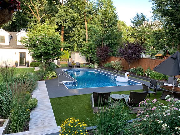 Single family colonial home - 3 bedrooms 2 full baths with separate all season pool house w/ gourmet kitchen and 1/2 bath. Within short walking distance: Travel elementary school (3 blocks), Ben Franklin middle school (4 blocks), Ridgewood HS (6 blocks) Valley Hospital (4 blocks) Maple field - a town turf field for soccer, lacrosse, football and baseball/softball (2 blocks) Ridgewood Library (4 blocks) Downtown ridgewood & train to NYC is a short 10 minute walk. Well maintained Main house with many sought after features: a chefs kitchen, central AC, updated 200 amp electric service and gas heat. First floor has beautiful 3/4" rosewood hardwood floors throughout. Second floor has white oak hardwood in all 3 large bedrooms. Dinning room and living room have crown molding. Living room has gas insert fireplace with marble surround. Gourmet kitchen is built around a Viking 8 burner gas range with indoor barbeque, griddle and industrial range hood. Grill a steak or burgers for your family year round in your kitchen! Kitchen opens through a set of french doors onto a covered porch which overlooks a professionally designed, show stopping backyard oasis with heated in-ground pool, 8'x12' storage shed and mature flower beds. A one of a kind custom IPE hardwood walkway leads 70 feet from the main house to a stunning 720 square foot Pool House/Collector Car Garage. The pool house is fully insulated & has a Mitsubishi mini split heat pump to keep the bright open space cozy warm in the winter and cool in the summer. A second gourmet kitchen in the pool house is ideal for entertaining guests year round. A large center island with overhead skylight holds a professional Wolf 4 burner gas cooktop and Wolf electric oven with stainless steel hood. Ample counter space and cupboard storage in eye popping marine blue cabinets with mirrored doors. Subzero refrigerator and freezer. Modern 2 piece bathroom with skylight. Entertain large groups year round in this amazing space!