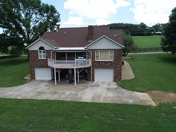 Spacious, mostly brick home completely remodeled and sitting on 3 lots. Large master bedroom with separate area for office, nursery, or 3rd walk-in closet. Master bath has tile shower with glass doors, soaking tub, and double vanities with granite counter tops. Two walk-in closets and vaulted ceiling in both MBR and MBA. The open great room, kitchen, and breakfast room features vaulted ceilngs and has a double sided gas fireplace. Completely remodeled kitchen features center island with granite countertops, farm sink, and stainless steel appliances which remain with the property. The main level also has a sun room, 2nd bedroom with walk-in closet and full bathroom, and laundry room. Upstairs is a large bedroom with 2 walk-in closets, 3rd full bathroom, and 4th bedroom. The basement has two large garages a large den with wood stove and full bath with shower only. There is a gas line behind wood stove if you would like to remove wood stove and install gas logs. Roof was replaced in 2015 and HVAC units are new. This home also has a circular drive in front and a second driveway to basement garages. There are two water heaters - one is gas and the other is electric. Electric is currently not in use. There is a security system but it is not currently being monitored. Washer and dryer also remain with the property. Wonderful home and move-in ready!!