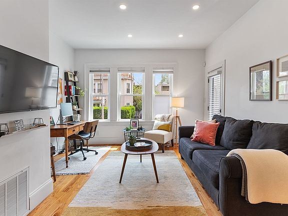 This sun-drenched 2 bed 1 bath home blends modern comfort offering an ideal layout for both relaxing and entertaining. Step inside to discover an open-concept living/dining area featuring gleaming hardwood floors, recessed lighting, and oversized windows that flood the space with natural light. The kitchen boasts quartz countertops, custom cabinetry, stainless steel appliances. Both bedrooms are generously sized with ample closet space, while the fully updated bathroom showcases contemporary fixtures, a chic vanity, and stylish tile work. Additional highlights include in-unit laundry, central air, and a private outdoor space ideal for morning coffee or evening unwinding. Located just minutes from Red Line T stations, parks, local restaurants, and shops, this home offers the perfect blend of convenience and modern living in one of Dorchester’s most exciting neighborhoods.