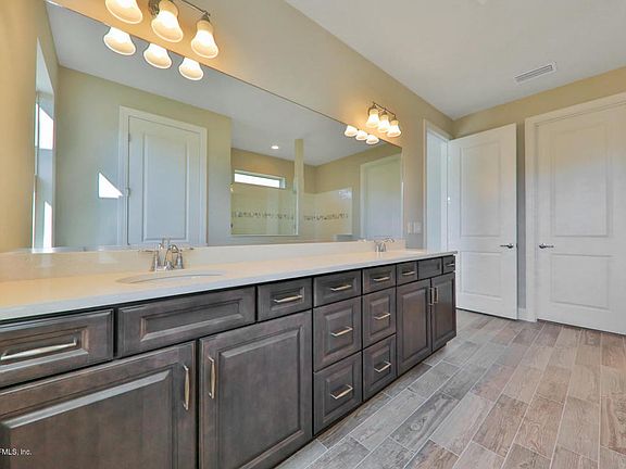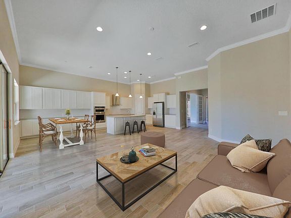 Ready NOW! NEW BLOCK construction, Minutes from the beach! This one will sell fast! This 4/3 home boasts vaulted ceilings, 8 ft doors, wood plank tile throughout, an oversized 3 car garage, and Paver driveway. Not to mention the Office w. glass French Doors, open kitchen w. over-sized food prep island, extended white cabinets and beautiful quartz counter tops including STAINLESS steel appliances! You won't be disappointed! You will even have an Amazing Laundry Room w. Custom Built Cabinets and sink! Don't miss it! Relax in the master bedroom oasis and spa-like master bath w. over sized shower and walk in closet. Then step out and Enjoy quiet evenings and the beautiful Florida weather on the Huge Covered Lanai and private backyard.