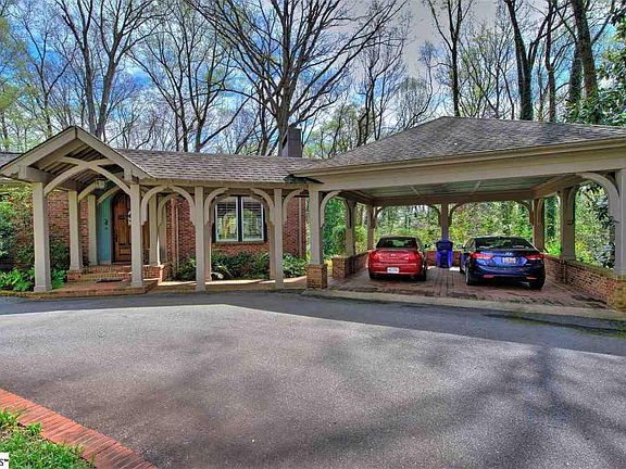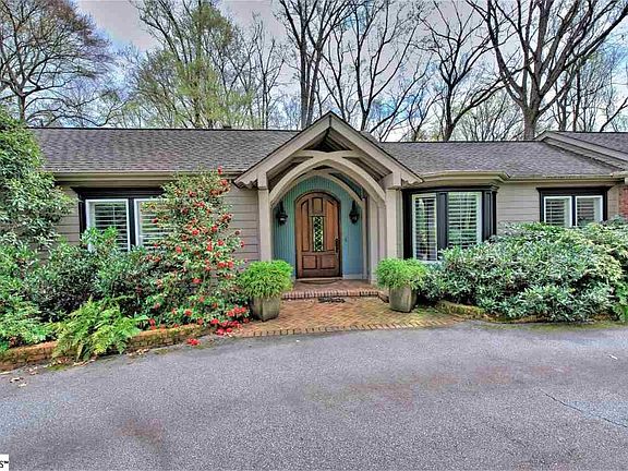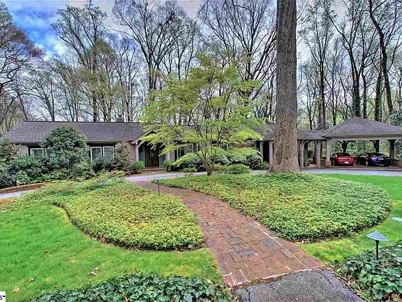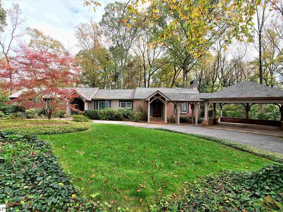 A home and acreage like no other! 359 Riverside Drive is now available and is an exceptional property in an incredible location. The extensive renovation was designed by local architect, Jack Thacker. Seller has all new paint throughout. This 4089sf single level home, 4 bedroom 4.5 bath home sits on 2.27 lush acres, professionally landscaped gardens, natural and wooded areas with a lovely flowing creek. The gardens and grounds were featured in the 2015 Greenville Council of Garden Club's Garden Tour. All formal rooms in addition to library, family room and sunroom. Custom cabinetry and built-ins in this home make living and entertaining a dream. The outdoor deck and stone patio with fountain look into the woods and offer amazing views and privacy. 2 car oversized garage on lower level, 2 car carport on main level and large circle drive offer ample parking for owners and guests. This is a must see property for those looking for a home and acreage in the heart of Augusta Road and within walking distance of GCC.