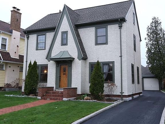 Wonderful Tudor style colonial on the sought after Sibley Tract/19th ward, listed in the National Registrar of Historic Places. Close to University of Rochester and hospitals. Extremely well cared for home-original Gum wood trim, hardwood floors. leaded glass doors. Foyer vestibule features 2 closets and leaded door. Wood burning fireplace with built-ins in living room. Formal dining is stunning with picture frame molding and leaded glass! Gorgeous mission style wide molding and trim. Fantastic enclosed side porch for relaxing and enjoying the yard space. Master suite has full bath and double closets! Third level is finished too! 2 car detached garage. Fenced yard features brick patio area and deck space off porch. 2011-blown in insulation; security system installed. 2012-glass block windows basement. 2013 exterior stucco painted. 2016 all exterior trim and garage painted. 2017 new tear off roof-50 yr. shingle. & new attic skylight. New drainage in backyard. 2019-replaced tub distribution. 2020 new garage side door. Nothing to do here - excellent condition. Please check out the video tour. Close to all! All offers due Sunday 5/3 at 3 pm.