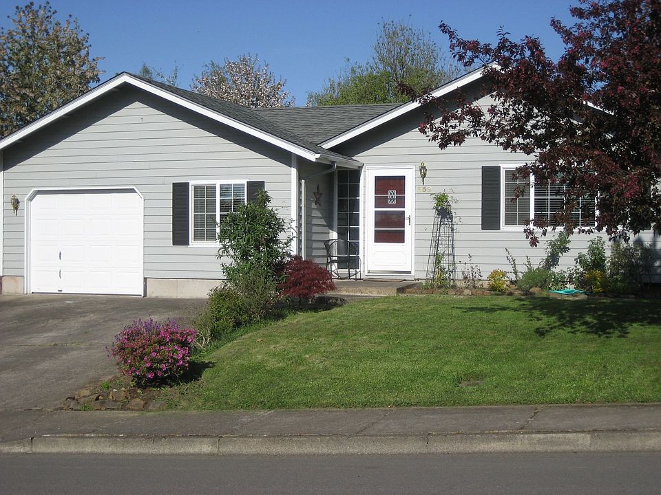 Affordable home in nice Thurston hills neighborhood. Great curb appeal and charm. Open floor plan, vaulted ceilings and large vinyl windows make this home light and bright. Large bedrooms with walk-in closets. Spacious kitchen with tons of cabinet space. Very private yard/patio with mature trees, perennials and greenery. Mountain and sunset views.