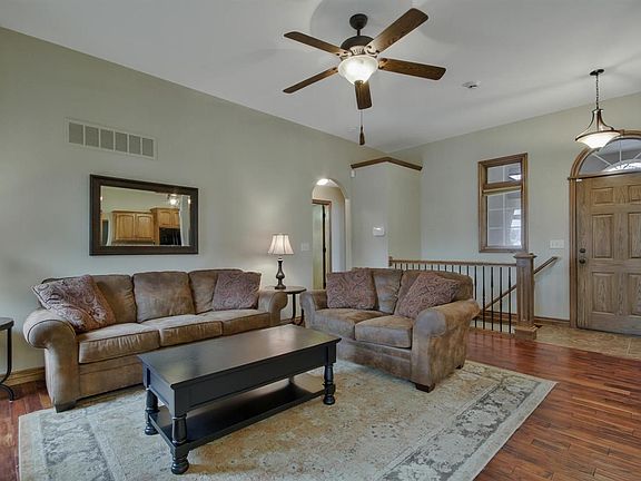 Amazing family home in the Auburn Hills Addition. This house features an open kitchen with an eating bar, walk in pantry, granite counter tops, plenty of counter space, main floor laundry, split bedroom plan with a master suite including a separate jetted tub and shower, double sinks, 2 closets with one of them being a walk in. The living room has a cozy fireplace. Hardwood floors thru out the main level. Finished basement with huge rec room, a second fireplace, wet bar, bedroom and full bath. There is an additional room that could be finished off to make this a 5 bedroom house. Yard has a sprinkler system on a well and privacy in the backyard.