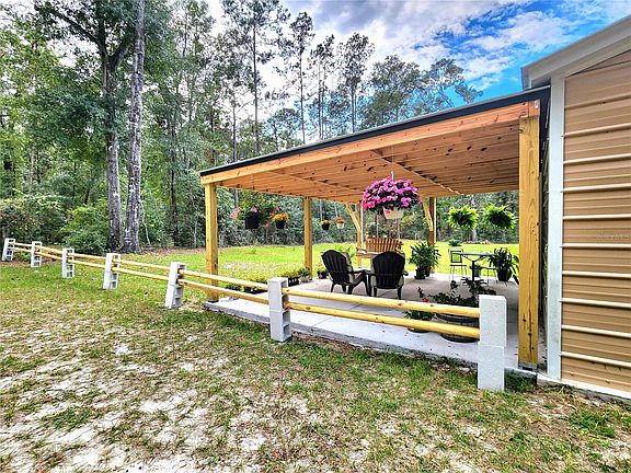 Motivated seller is willing to Owner Finance the purchase of the 2023 home in High Springs at the end of a dead end street. If you’ve been searching for a spacious, well-designed home that offers both comfort and the flexibility to accommodate your family, livestock, or even a small business, look no further. This stunning steel architectural home, situated on 2 acres of land and zoned AG3, presents a unique opportunity to live the Florida countryside lifestyle with all the modern amenities you need. Perfect for Families, Livestock, and More At the heart of this property is a 2,700 sq. ft. home designed for both relaxation and practicality. The kitchen has a 16 ft counter for food preparation. There are 2 ensuites, each featuring private exterior access doors and can easily be made into and in-law suite as there is space for an office or kitchenette. The layout of the home features an open split floor plan, polished concrete floors, and 9-foot ceilings. The entire property has been thoughtfully designed with Pensacola Bahia grass planted throughout, ensuring a lush and healthy pasture for your animals. It’s the perfect setting for your livestock, horses, or even a small hobby farm. Zoned AG3, this property is perfect for a variety of agricultural and commercial uses. In fact, the owners have already obtained a commercial business license for a nursery, which opens up even more possibilities for this land. Whether you’re looking to run a small business, start a farm, or simply enjoy the quiet of rural life, this property offers incredible versatility. This home isn’t just beautiful  it’s equipped with a range of thoughtful upgrades designed for sustainability and off-grid living. From open-cell insulation to solar attic fans, the house is designed for energy efficiency. Stay comfortable year-round with two 18,000 BTU units that cool, dehumidify, and heat the home as needed. You will never be without water, heat or electricity. Included with the purchase is a 28000 K Generator with remote start, powerful enough to supply electricity to both the main home and a second potential home on the property (there are two septic systems and a separate electric meter, making this an ideal setup for extended family or guests). A well with a Doomsday pump ensures you have access to water and there is a wood burning fireplace inside and out. Outside there is a 12x24 storage shed and an all-steel garage (24x60) with a 12x12 roll-up door and concrete floor, perfect for storing farm equipment, 4 wheelers, or motor bikes. While you’ll enjoy the peace and privacy of rural life, you’re never far from local attractions. The home is just minutes from the historic town of High Springs, known for its charming downtown, local shops, and restaurants. The Oleno State Park is nearby, offering miles of hiking, paddling, biking, and equestrian trails. The property is also adjacent to the Florida Bible Camp, nestled on 200 wooded acres near the scenic Santa Fe River. This home is an incredible find for anyone seeking a rural retreat with endless possibilities. Don’t Miss Out – Schedule a Showing Today! Words and pictures can’t do this property justice. The space, the features, and the potential are best experienced in person. If you’re ready to make this unique property your own, don’t wait  schedule a showing today and see all that this spectacular home and its 2-acre plot have to offer.