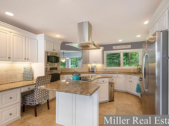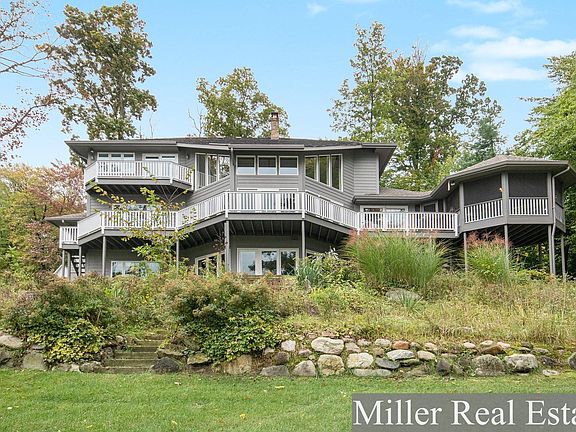 This Beautiful Lake Doster 2 story walk out home has exceptional views of Lake Doster. Large great room with vaulted ceilings and cherry wood flooring, European Heat System fireplace, large Pella sliders wrap around the room for expansive views and decking. Step up into your large recently remodeled kitchen with stainless GE appliances, natural stone HEATED floors which you will love in the winter months, solid cherry cabinets and granite countertops with tumbled marble backsplash,. Walk out to your large screened porch gazebo attached to the kitchen. Main floor dining room and office along with 1/2 bath and large laundry room complete the main level. Large master suite features vaulted ceilings, walk in closet and expansive marble master bathroom with Jacuzzi tub and double sink. Two additional bedrooms on the upper level and second full bathroom. Walkout garden level boasts a large family room with fireplace and 9' ceilings, two large bedrooms, wet bar and full bathroom. Loads of storage and zoned heating to control temperature on every floor.