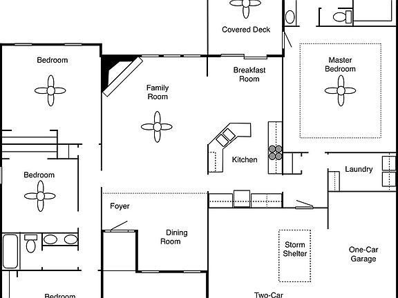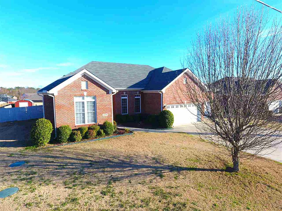 Charming brick home offers open floor plan, 4 bedrooms & 3-car garage. Formal dining room features crown moulding and wainscoting. Corner gas fireplace warms spacious family room. Isolated master includes large walk-in closet and glamour bath w/whirlpool tub, separate shower, & double vanity. Custom cabinets, granite counters, tile backsplash & work station combine beauty with functionality in kitchen. Sliding glass doors exit from breakfast room to covered deck. Safe room beneath the garage floor. Outdoor living includes covered deck, open patio with sitting area and custom patio space ideal for an above ground pool. Variety of flowering plants, blueberry and thornless blackberry bushes.