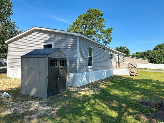 This home is priced to sell due to a job relocation. A lovely 4 bedroom 2 bath like new (2023) manufactured home is located in Emerald Forest on a corner lot with a low monthly land lease and comes with a detached shed, lawn mower and all appliances including washer and dryer. Carolina Forest community offers many choices for shopping and restaurants and is 7 miles from the ocean. The open floor plan with family room, kitchen and dining area invites gathering with family and friends. This home boasts a spacious kitchen with large island bar, a walk-through pantry and an abundance of cabinets and extra counter space. The three bedrooms located off the dining area share a full bath and are near the laundry room. The primary suite on the other side of the home enjoys a private bath with freestanding soaking tub, shower and double vanity. This corner lot has a large back yard with detached storage shed.