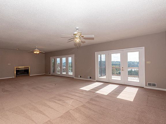 Panoramic Lake and Mountain Views! First time offered custom all brick basement rancher featuring a beautiful open floor plan for kitchen, dining, and living areas, home office with built- ins, and 4 bedrooms including a spacious main level master suite. The full walk out basement with additional kitchen makes the perfect place for entertaining and functions well as separate living quarters. There are many things to love about this beautifully maintained home: a large screened porch with wonderful views, gas log fireplace, tons of storage, workshop and 3rd garage in the basement and more! Located in Foothills Pointe, a welcoming lakefront community with clubhouse, swimming pool, tennis court, picnic area, boat ramp, and private marina with very low fees. You will love it here!