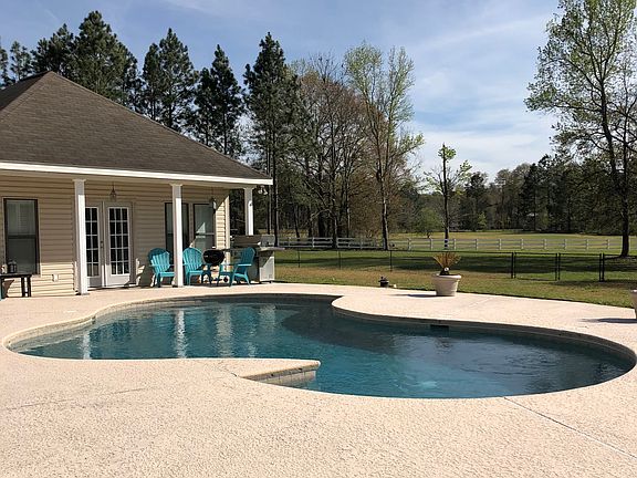Salt pool, 5 acre lot, separate pool house includes full kitchen, bath, bedroom and living area. Finished bonus room over the garage great for office or media room.