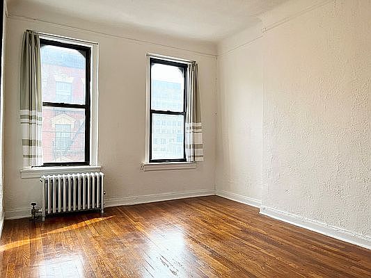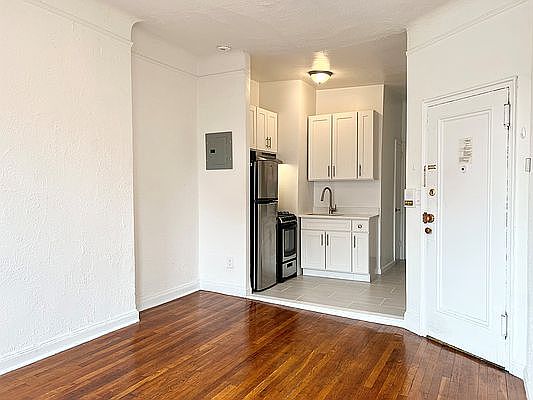 Top floor super sunny Harlem studio with renovated kitchen and bathroom. 5th floor but 4 flights up, the apartment offers an open south-facing view, 9'5" ceiling height, a large living and sleeping area, hardwood and tile floors, one deep closet, and a windowed bathroom. Conveniently located on the same block as, the A, B, C, and D trains, residents enjoy incredible access to an abundant variety of local dining and entertainment options nearby, such as the infamous Apollo, Clay, Red Rooster, Magic Johnson Theater, Vinateria, Melba's, Angel, Maison, Lido, and many others. 125th Street is lined with great grocery and retail shopping featuring DSW, Whole Foods, Marshalls, TJ Maxx, H&M, and more. Additionally, it's only a few blocks to some of NYC's greatest features and landmarks like Morningside Park, St Nicholas Park, the beautiful Columbia University campus, City College, and Grant's Tomb. One cat ok, dogs case by case.
