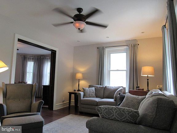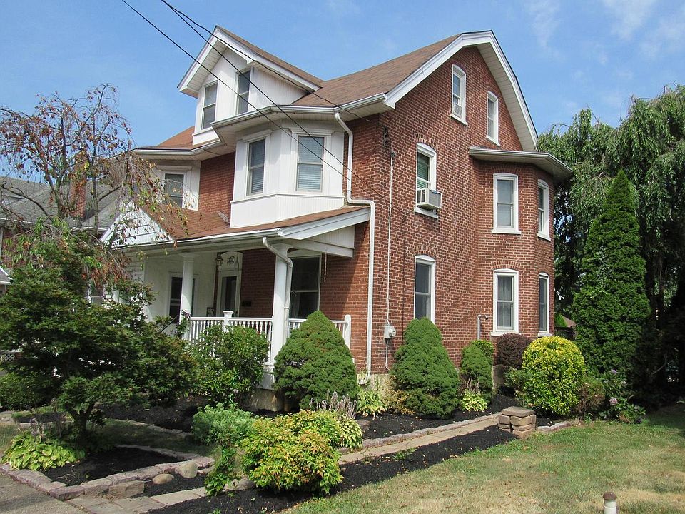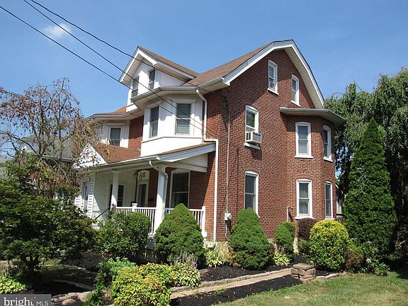 This tastefully updated 4 BR twin is full of charm, situated in Telford Borough, a short walking distance to parks, cafes and public library. Enter from the covered front porch with new maintenance free railing to the living room, past the restored pocket doors into the adjoining large dining room, featuring high ceilings, large bay windows and wood pellet stove. Pass the powder room into the eat in kitchen with upgraded cabinets, granite countertops, tiled backsplash, under cabinet lighting, touchless faucet, new 4 piece stainless steel appliance package with smart range including an air frying feature. Open the kitchen bay window to listen to the gentle waterfall of the fish pond or exit the kitchen onto the newly refurbished trex deck stepping down into the fenced in back yard complete with patio and 2 quaint outbuildings for extra storage. The second level has 3 bedrooms and beautifully renovated full bath with custom tile and soaker tub. The 2nd floor includes 2 spacious bedrooms with bay windows. The 3rd bedroom is perfect for a nursery or at home office. The main bedroom on this floor includes 2 large closets. The 3rd floor offers a huge 4th bedroom with vaulted ceilings, storage space and walk-in closet. This freshly painted home boasts many upgrades including new flooring throughout, Andersen replacement windows on 1st and 2nd floors, vinyl replacement windows in 3rd floor, bathroom and basement, insulation upgrade on exterior walls, recessed LED lighting, ceiling fans throughout, and a new water softener with whole house filtration system. This property offers the convenience of alley access with an insulated oversized one car garage and additional parking spaces. The garage is tastefully finished with stucco and stone complete with recessed lighting and porch with French doors overlooking the backyard garden, which includes a separate entrance to a heated finished bonus room perfect for extra play space with storage on the 2nd floor. This home provides all the charm of an older home with all of the important upgrades in a location near Routes 309 and PA Turnpike. Enjoy a movie night at Broad Street Theatre, a stroll through Telford Farmers Market, take in live theatre, grab a bite at North Bound Restaurant or meet for coffee at Broad Street Grind. Located in Souderton Area School District, this home is ready for you to move right in.
