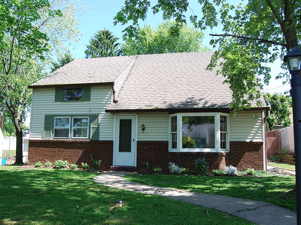 Fabulous find! This is one of the largest homes in the neighborhood with the addition of a large family room on the rear of home. Enter into a living room with the large bay window. Half wall separates the generously sized eat-in kitchen. Plenty of counter space with spacesaving microwave, range and dishwasher. Family room with sliders to back patio and gorgeous new laminate flooring. Built-in brick raised hearth adds a nice accent and entertainment center corner. Full bath, laundry/mudroom on first floor, along with master bedroom and 2nd bedroom. Additional bedrooms on second floor. Off-street parking and fenced yard. A great and convenient location!