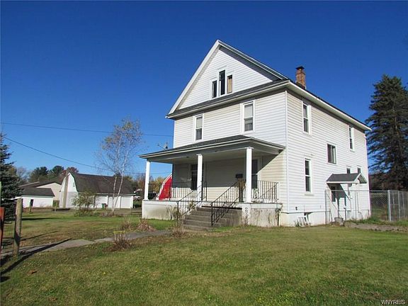 Bring your horses and use as existing 4 bedroom home w/ 11+ acres & barns or use as a great business opportunity to make some money & start from scratch with a new venture! New electrical panel box w/ 200 amp service, newer kitchen needs finish work, house has newer roof, 4 bay garage, seperate 1 car garage & HUGE barn that has 6 stalls, riding arena, electric fenced pastures & much more on the 11 acres w/ woods! Beautiful grounds, all in the village limits w/ all amenties on Route 39, close to Route 219. Owner may consider holding a mortgage with large down payment.
