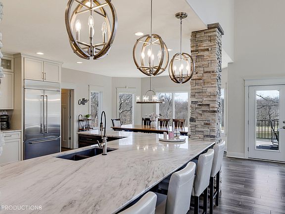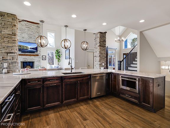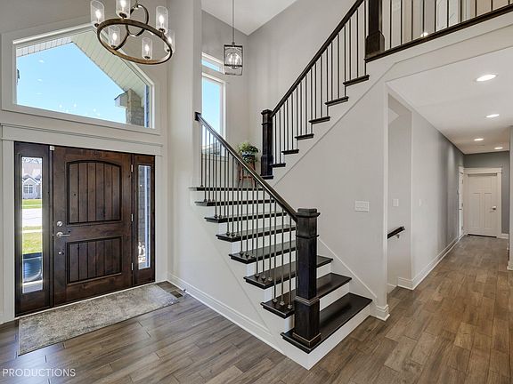 Stunning lakefront property nestled in the serene Arbor Lakes Estates subdivision. This exquisite home boasts top-notch amenities including city water & sewer, oversized gas/wood fireplace, expansive marble kitchen counter, premium appliances, and a butler's pantry. Each spacious bedroom features a walk-in closet. The main suite showcasing a luxurious Roman shower, soaker tub, and his & her closets. Enjoy entertainment in the theater room or find inspiration in the craft room. Exterior highlights include Anderson 400 series windows, real stone and Hardie board siding, a walkout basement leading to just under 1 acre of privacy, Trex upper deck, lower paver patio, and an 80' retaining wall with firepit. The 4.5-car garage offers smart openers, electric car ready, and premium cabinets. Interior features include 18' ceilings in the great room, 10' coffered ceiling in the office, electric blinds, push-button mantle mount TV stand, and premium hardwood floors. 6 total bathrooms with two jack and Jill bathrooms complete this home. Enjoy living at its finest! No other home on the market compares to this home. Everything in this home is upgraded, 2x6 exterior walls, rear landscape lighting, and an entire yard irrigation system, this home exceeds expectations in every aspect.