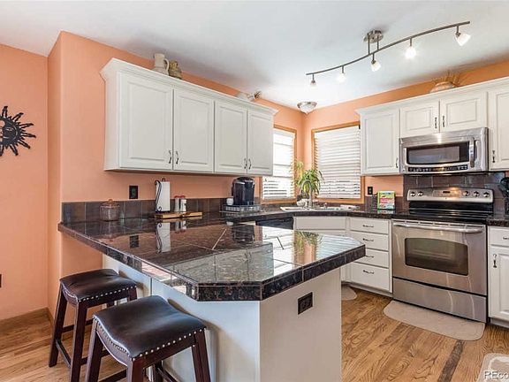 Better than new home on a corner lot with mountain views and a fully finished basement! This home features a new roof, new carpet, both newly remodeled kitchen and 5 piece master bath and a finished basement with rough in for a full kitchenette. The three car oversize garage can easily fit a full size SUV. No metro district! The home is located in South West Loveland close to great schools, parks, shopping and recreation! This is one of those rare homes with a main floor master for any generation! Five bedrooms and 3 and a half baths is a rare find under 500K. Move in ready! All appliances and pool table included!