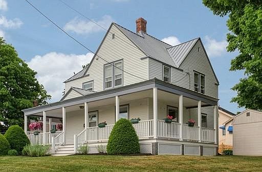 This stately and impressive cross gable colonial home, just 1.5 miles from Rt 2, showcases a wide wrap around porch and metal roof, boasts professionally maintained hedges and landscaping surrounding a beautiful inground pool with new liner and solar cover! There's a 3/4 bath with shower on the first floor and space for a large pantry area off the center island kitchen. Enjoy plenty of room for entertaining indoors and out! Glass french doors and lovely Brazilian cherry hardwood floors flow from the formal front entry hall, through the spacious living and dining rooms. Sip coffee on your front porch in the mornings or step out your back door to serve cold beverages poolside in the afternoon! An over-sized detached garage and separate shed add to the convenience.of storing your car, lawn mower, and pool accessories! Generator hookup in electrical panel, and 3 zone sprinkler system. This is a fantastic home for this price!