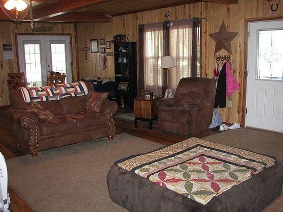 Downstairs has 3 bedrooms 2 living rooms, and 2 bathrooms, kitchen, upstairs has living room, 2 bedrooms 1 bathroom and kitchen, has 2 shops one is a 30x50 the other one is 24x32 has an above gound pool 32 ft around and 7 1/2 ft deep on one end plus 2 storage buildings