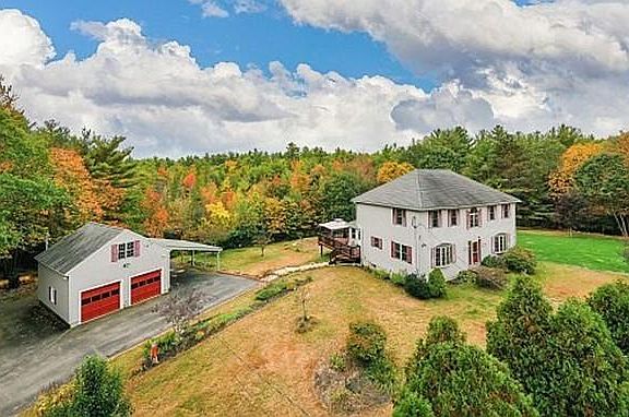 AMONG THE BUTTERFLIES, FLOWERS AND TREES finds this immaculately kept 3 bedroom Hip roof Colonial, Enter 3 season mud room with cathedral ceiling, Stunnng kitchen with granite countertops, cherry cabinets, recessed lighting, Front to back living room has hardwood floors and pellet stove for warm winter nights,, 4 large bedrooms upstairs with master bedroom suite has private bath and walk in closet. large oversize deck overlooks very private backyard, 2 car garage with family room above, set on 2 acres. New 4 bedroom septic, Mint condition. 10 minutes to Rte 2 and 31.