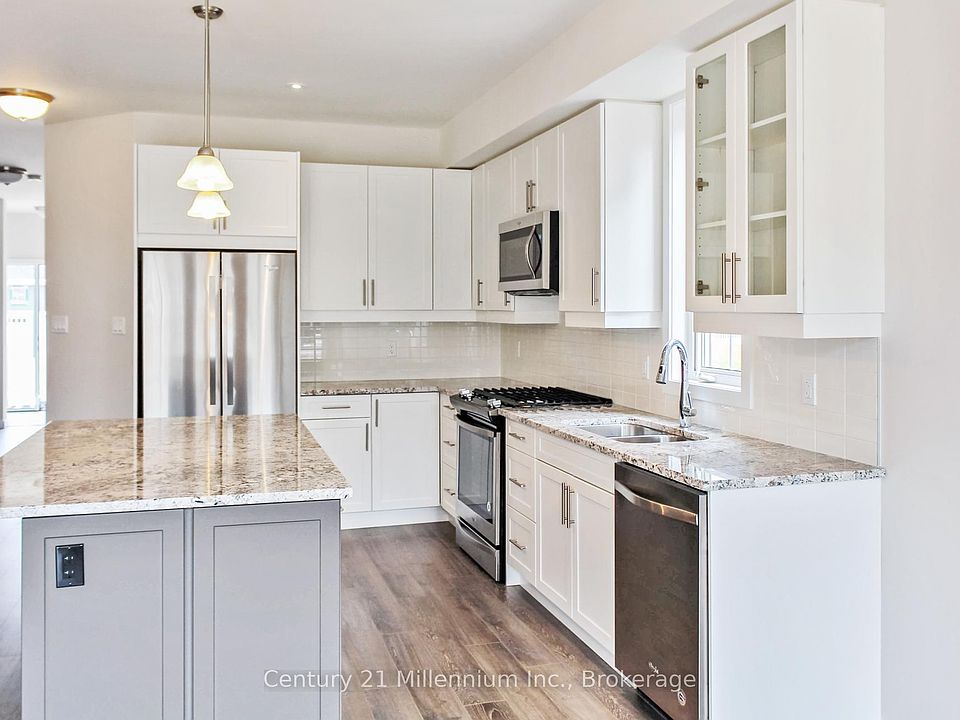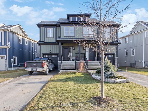 Luxury living at an incredible price - better value than a pre-construction model and steps from a year-round heated outdoor pool and hot tub! The Mowat model features a spacious layout ideal for entertaining, with ample room for a full-sized sectional in the great room, perfect for hosting gatherings after a day of outdoor adventures in Southern Georgian Bay. Windfall provides owners and their guests with an exclusive amenity center with a year-round heated pool and hot tub, clubhouse, gym and sauna. Enjoy breathtaking views of Blue Mountain from your yard. This lovely home is steps away from green spaces, trails, and ponds. The fully fenced yard provides a serene environment for kids and pets to explore and play. Chef's kitchen with stone counters and oversized breakfast bar. Convenient upper-level laundry is near the luxurious primary suite, featuring a spa-like bath with a soaker tub, double sinks, and a glass shower. Two additional bedrooms and another full four-piece bath complete the upper level. An open-to-below plan in the lower level offers endless possibilities for customization, allowing you to create the perfect rec room to suit your lifestyle. Custom shutters and blinds throughout. This oasis is tucked away from the busy roads and ideally positioned near 'The Shed,' providing easy access to amenities and activities.