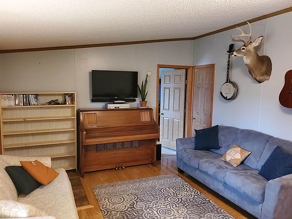 Great mini farm set up perfect for livestock and chickens! This 3 bedroom 2 bath manufactured home sits on 3.66 Acres with an attached 2 car garage. The home is situated at the end of a dead end road providing privacy and quiet living. Inside this home you'll find spacious living areas and bedrooms, a master suite, laundry room, and open kitchen/ dining area. Other great features are the screened in back patio and covered front porch overlooking the front pasture. Call today to schedule your private showing!