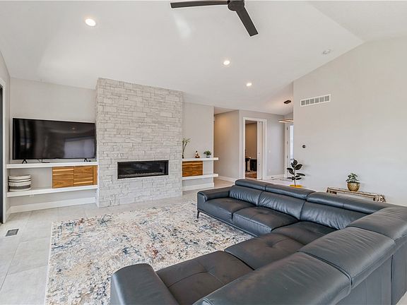 Come check out this spacious modern ranch home backing to a treeline and a park in Clive. This house comes loaded with upgrades including the tile work throughout the main level, custom walnut cabinets, the custom large pantry, and the custom bar table. The main level is open with giant windows overlooking the tree line and double sliding glass doors out to the deck. There is an office on this level and the primary suite with a giant walk in closet. Down the custom wood tread stairs you will find a large family room / bar area perfect for entertaining. The bar has its own half bath to go along with a full bathroom and two additional bedrooms. This is a one of a kind home in a great established neighborhood.