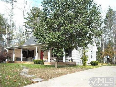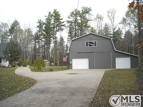 Contemporary home on 5 wooded acres, easily converted to 3 bedroom. Nice combination kitchen & dining room with view of the woods from the dining room door wall to enjoy the wildlife. Living room has vaulted ceiling with full wall built in wall unit with gas log fireplace in the center. Main floor Master Bedroom with walk in closet & master bath, separate sink area & double storage W/closet. Large open loft up could be converted to 3rd bedroom, Large bedroom up with 3/4 bath. Huge pole barn would fit 5 cars & has upper living space, noted as the 39.3 x 27.6 upper Family room. Refinished interior walls newly painted,insulated heat ducts & plumbing,new well pump tank,new walk in shower, insulated attic, energy efficient bulbs through out house and pole barn. Generator hook up, welder hook up, fenced in dog pen. Fenced garden area, 1 acre of invisible fencing for your pet. Natural gas is installed. Brokered And Advertised By: SMITH-MILLER,INC. Listing Agent: JUDY BOMAN
