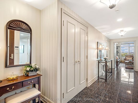 Where timeless design, comfort, and incredible views come together. This elegant 2-bedroom + den/office, 2-bathroom condo offers 2,136 sq ft of thoughtfully designed living space. The spacious foyer with granite floors sets the tone, leading into bright, open-concept living and dining areas framed by wall-to-wall windows, providing panoramic views and natural light throughout the day. The kitchen features quality cabinetry, generous counter space, and a breakfast nook that opens to a private enclosed balcony perfect for morning coffee or enjoying the view year-round. The primary suite offers a walk-in closet and a spa-inspired ensuite with a soaker tub and double vanity. A second bedroom and versatile den or office, plus a convenient laundry room and a utility room for extra storage and organization complete this ideal floor plan. Bonus features include two parking spaces and two storage lockers for added convenience. Enjoy resort-style amenities including a fitness centre, indoor pool, tennis and pickleball courts, party room, games room, hobby room, BBQ area, and more. This 24/7 gated community is refined condo living. Book your private showing today!