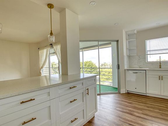 Luxurious renovated 2/2 PENTHOUSE CONDO with a 25' amazing, oversized balcony overlooking Via Poinciana and the club house. Enjoy watching all the activities going on & the beautiful sunset. Kitchen has been opened up drawing more natural sun light. Enjoy quartz countertops, brand-new cabinets throughout, luxury vinyl washer/dryer, subway tile back splash & beautiful appliances. This amazing location is minutes from Fla. Turnpike and I95, great shopping, restaurants, activities, airports, places of worship, medical centers, polo grounds & the wonderful beaches. Community Pool is just waiting for you with so many other amenities to choose from.