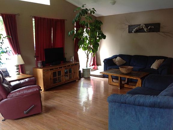 Amazing Moose Pass location. This 3 bedroom 3 bath home sits on 2.36 acre private lot with stunning views of the surrounding mountains and Trail lake. The 2400 square feet of open floor plan living space features custom woodwork throughout, tile and hardwood floors, jetted tub. A short 20 minute drive to the Kenai river or 30 minutes to Seward and Resurrection Bay.