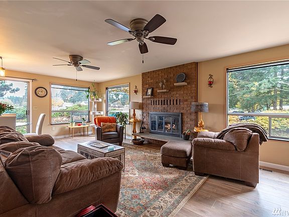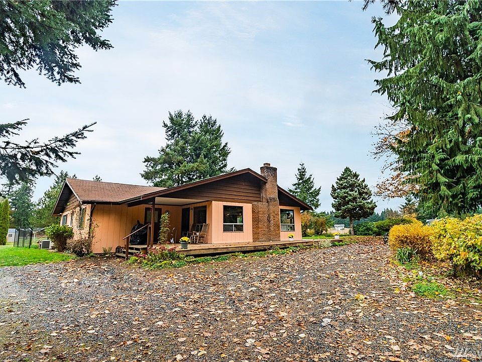 Come check out this gorgeous rambler on 10 acres, first time on the market in 40 years. The home has an open floor plan; large kitchen that leads to the dining area & living room w/ cozy fireplace. There are 2 large bedrooms w/ 2 baths, and an extra bedroom/bonus room w/ closet & wood stove. Newer flooring/carpet & HVAC dual furnace. Nice front deck, lrg shop area, barn, & storage shed. Beautiful, level, fully fenced/cross fenced & dbl fenced w/ many varieties of fruit trees & view of Mt. Rainier. There are two wells & two septic systems, so much potential to sub-divide, or enjoy all this beautiful property on your own. Come check this home out today!