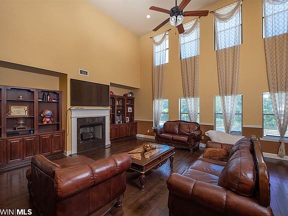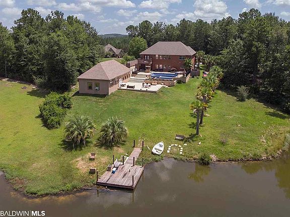 **Update 11/25** Seller is EXTREMELY motivated. Considering any and all offers. Don't miss out.** This is truly an absolute must see home that has something for everyone! Located in the beautiful Delta Woods community is this one of a kind home. It features a beautiful open floor plan in the main living room. The master bedroom and bathroom are downstairs and is truly a sight to see. it includes a beautiful walk in shower, huge open closet, and much more. There are 5 bedrooms upstairs as well as a large theatre/media room with a huge projection screen for movie lovers. The upstairs features 2 full bathrooms as well as a great balcony overlooking the pool and lake. There is also a pool house with a 2 car garage, which includes a large area/room that has plenty of space and could be used for just about anything. Out back you'll find a gorgeous Gunite infinity pool with jacuzzi overlooking a magnificent scenery that includes an amazing pond lined with beautiful palm trees. All appliances/furniture convey as well. The Delta Woods community is in the Spanish Fort school district. Homes like this do not become available often so do yourself a favor and come check out this spectacular home while you can!