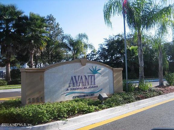 Great condo in desirable Avanti Community. Conveniently located near JTB for quick commutes to Downtown, beaches or anywhere in Jacksonville. This condo boasts an open floor plan with living/dining combo and built in desk adjacent to the large kitchen. The solarium off of the living area would make a perfect office space. This fabulous third floor unit uniquely has 2 car spaces, rare to a one bedroom unit.