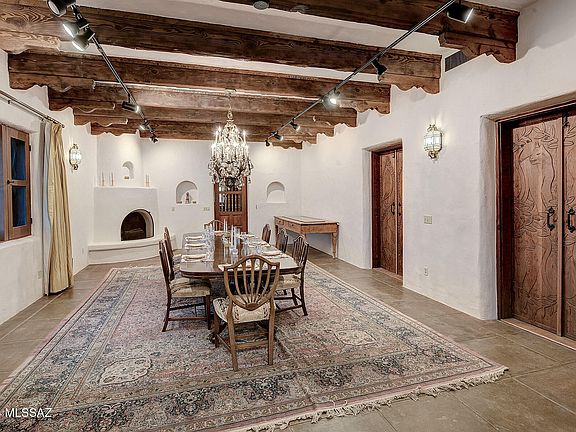 Formerly ''The Estate and Home of Bazy Tankersley'', Tucson's premier Arabian Horse breeder and newspaper publisher, daughter of US Senator Joseph McCormick and US Representative Ruth McCormick. Founder of Al-Marah Arabians in Tucson, her 10.75 acre home and compound bordered Al-Marah, allowing her quick access to her beloved horses. Bounded on either side by branches of Sabino Creek with forests of cottonwood, sycamore and mesquite trees, offered are the 5-bedroom 5 1/2-bath Main House with 4,740 sq. ft., the 876 sq. ft. 1-bedroom Casita and the 2,662 sq. ft. Event/Party House. Browse the 20' x 32' library/living room in the Main House with a soaring beamed & planked ceiling, a corner fireplace, hand-painted clerestory windows & doors (possibly painted by Helen Murphy) and, walls of built-in bookcases. House friends or family in the Guest House with kitchen, bedroom and living room. And entertain guests in the hacienda-like Event/Party house featuring a gourmet kitchen & butler's kitchen, professional gas range, separate breakfast room, glorious 17' x 30' dining room with rows of beams & corbels, a beehive fireplace, a historic chandelier, niches, and scored concrete floors. Meet or entertain in the 29' x 19' main room with a fireplace and lounge, or grow orchids in the 29' x 17' solarium. Mexican light fixtures, hand-carved doors, decorative iron door handles, and wrought-iron banister to the upstairs viewing deck. An abundance of high desert flora and fauna, private well, swimming pool, tie your horse to the hitching posts in front of the Main House and live a private, secluded life in one of Tucson's lushest locales.