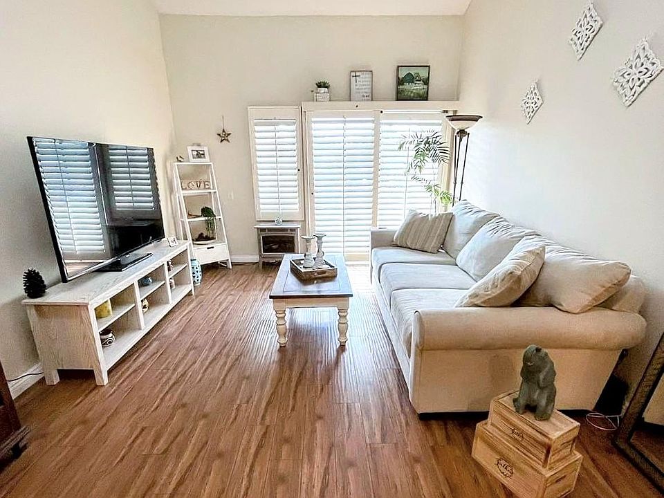 FURNISHED rental with two (2) off-street reserved parking. TEXT if interested. Condo is in a quaint and safe neighborhood with many young professional and families living here. The unit features sunset view from the private balcony and vaulted ceiling in the living room. Location is very central with easy access to all major highways and about 15 minutes or less to most places in San Diego. Perched above Mission Valley, it's close to shopping, entertainment, restaurants, parks, hiking, and a short 5-min drive to the brand new Snapdragon Stadium for concerts and sports games. The 65 inch TV in the living room is equipped to stream Netflix, HULU, HBOmax, etc.; sign into your account and start watching._______**UTILITY - Owner pays for water, trasher/sewer/recycling. Renter pays for all other utility._______**THE SPACE - This 2nd floor unit is bright and open. The living room has an AC, vaulted ceiling, and an open concept floor plan that flows into the kitchen and dining room. The kitchen is stylish with all stainless steel appliances, a deep large sink, ample cabinet spaces and under cabinet lighting. The unit is decorated and furnished with a bit of farmhouse meets french modern style. There is 1 large master bedroom with its own ensuite and 2 other bedrooms sharing the 2nd bathroom. Two of the 3 bedrooms are furnished with Queen beds and the 3rd bedroom can be set up with one King bed or two Twin beds.________**LAUNDRY - laundry room with ample number of machines just steps from the unit. There's never any wait and no need for quarters - payment can be managed through the mobile app, ShinePay.________**PETS - Landlord reserves the right to pet acceptance. $800 pet deposit and $100 rent per month per pet if approved. Only dogs under 35 lbs are allowed per HOA rule. Cats not allowed.________**COMPLEX AMENITIES - Adult & kiddie pools and jacuzzi; 4 BBQ grills; Club House with ping pong and pool tables.________**THE NEIGHBORHOOD - The police station is next door so the neighborhood is very safe. The station is an office location and they don't ever sound police sirens. For activities and entertainment, there is a golf driving range and batting cage less than 5 minutes away, Mission or Fashion Valley Malls and AMC theaters are 5-7 mins away. There are 2 beautiful parks within walking distance, one of them has a children's play area. Dozens of hiking trails are nearby, including the Mission Trails and Cowles Mountain hiking trails._______**APPLICATION - use Zillow for rental application and credit/background check. Landlord requires income/employment and rental history verification once application is approved. Must be willing to rent for a minimum of 3 months. No application fee. Renters pay for background and credit checks. In order to secure the rental, a Rental Agreement must be signed and first month rent and security deposit received by landlord.