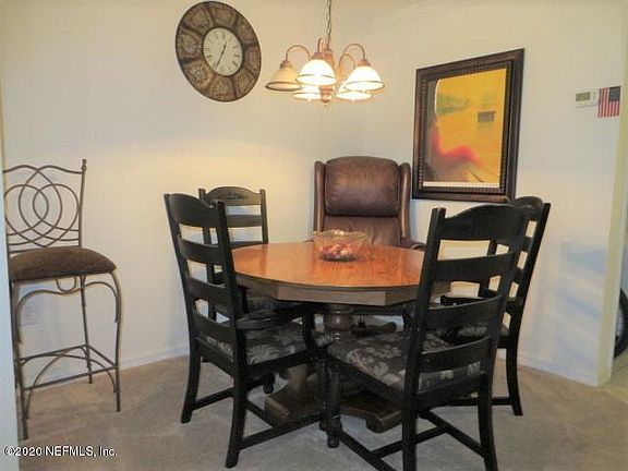 Sunny and spacious one bedroom unit with separate dining room and solarium (makes a great office). Large open kitchen with breakfast bar and laundry room includes washer and dryer. New-ish carpet and dishwasher. Beautiful gated community with clubhouse, gym and pool. Convenient location - near beaches, Town Center, JTB and I295. Walk to adjacent Publix and shopping center.