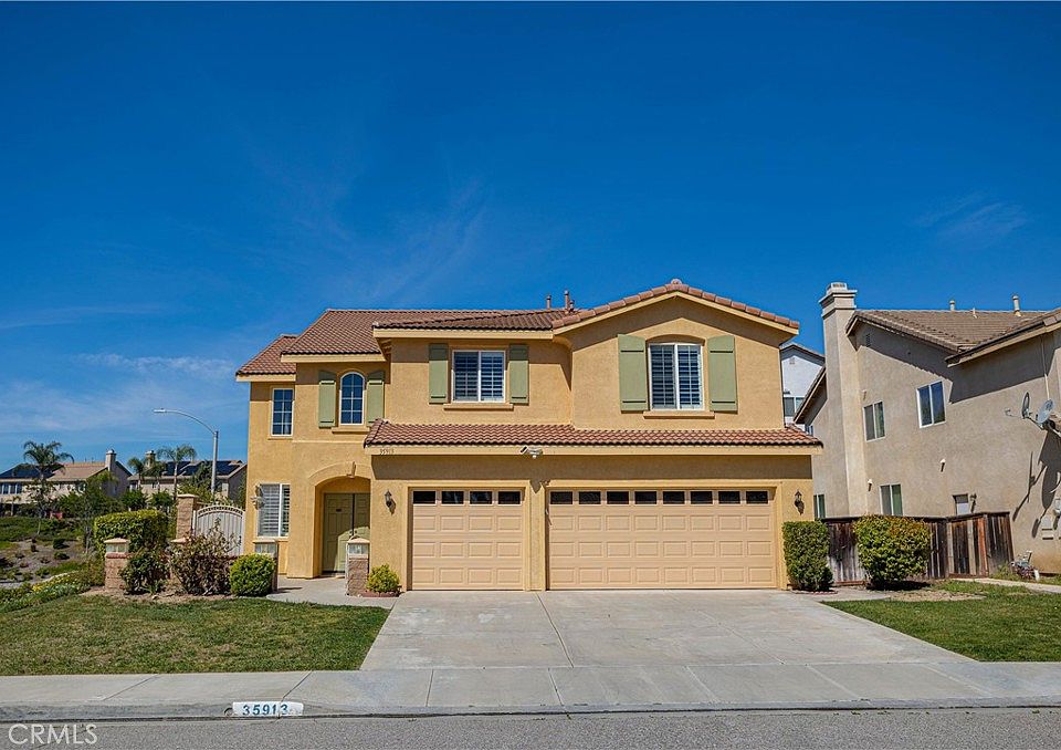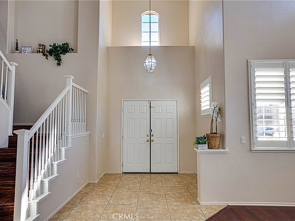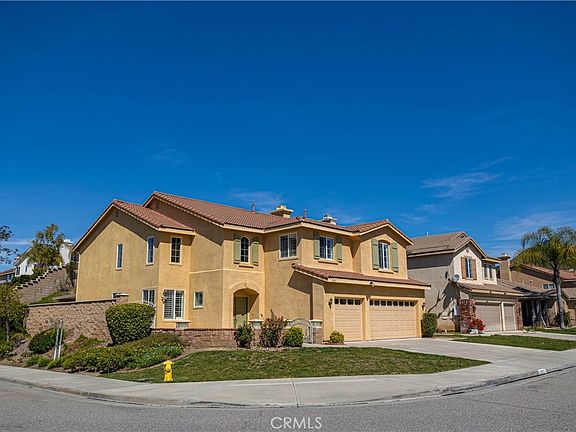 Gorgeous private Corner lot home in Wildomar nearly 3000 square feet home in very quite and nice neighborhood. Home has 5 bedrooms, Tax record only show 4 beds, 3 full baths. 3 car garages. There is one bedroom downstairs and convenience for guest room. Home has a court yard with private front gate. Stepping the double door entrance, you can see cathedral Ceiling and open floor plan with Living room and Formal dinning room with dark wood flooring. Kitchen with walk in pantry and maple cabinets. Island can be easy extension and upgrades for Buyer project. Wood shutter windows covering are throughout the house. New Oven and microwave installed. Roomy Family room with cozy brick fireplace. New Carpet and fresh paint throughout. Upstairs has 4 bedrooms, master bath with double dual sinks and master bed with his and her walking closet. Backyard with covering patio and side iron gate. Home locate in excellence location with easy freeway access, shopping. Low tax rate.
