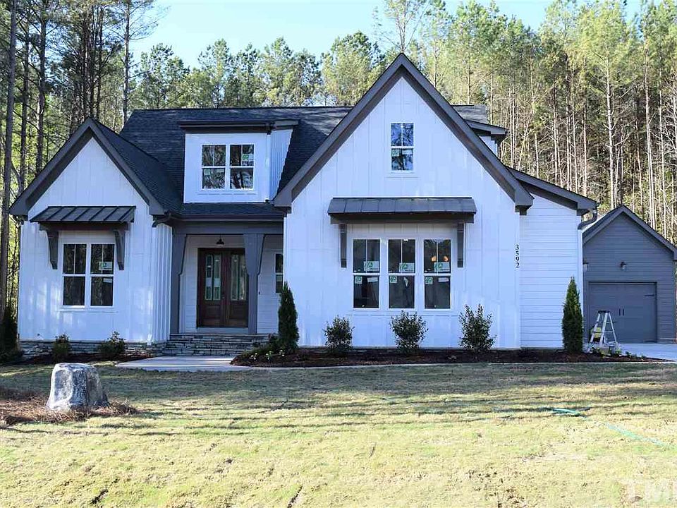 Beautiful Modern Farmhouse on ~1 ac. wooded, mostly flat lot. 4 bedrooms, 2-car attached garage plus detached single garage/workshop. Master bedrm plus another bedroom on 1st flr. Two add'l bdrms and rec room on 2nd flr. Quality features and fixtures throughout incl. granite counters, hardwood floors, ceramic tile, ss appli, natural gas, high-speed cable internet avail, community swimming pool and clubhouse with many activities. Ready late spring 2020.