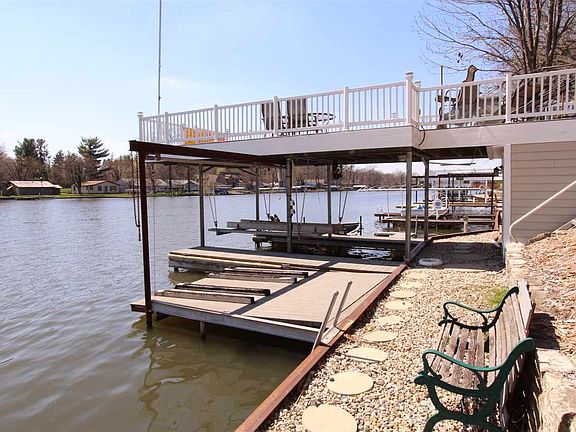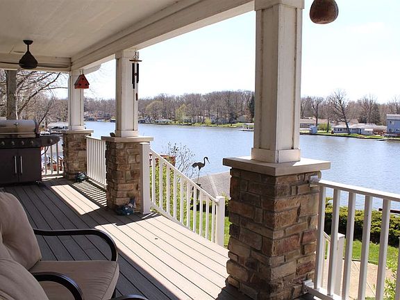 High quality craftsman style lake home. Spared no expense when building this one. Low maintenance concrete board exterior, 50 year shingle, covered composite back deck, permanent boat lift with deck above, double wave runner lift and a steel sea wall. Interior offers 4 bedrooms, 2 bathrooms, 2400 sqft, & quality throughout. Interior amenities include granite counter tops, tile floors, solid maple doors, 3 sliding glass doors for lake views & easy access, built in shelves, security system, high eff. furnace, & more. Also, a 2 car garage with large attic above & irrigation system for lawn. Low maintenance so you can take full advantage of the lake life!