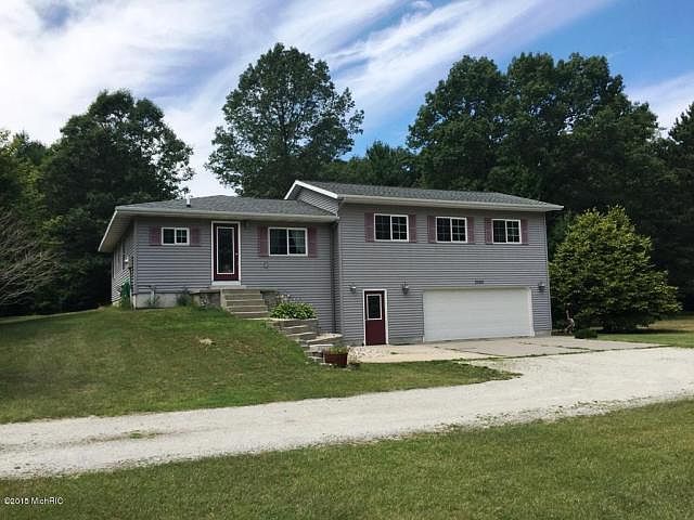 Immediate possession! Three bedroom, two bath home in Reeths-Puffer school district. Home has an open floor plan with cathedral ceilings. The kitchen features a center island, newer cabinets and a large dining area. The lower level has a large mudroom and a finished recreation area and exercise room. Outside is a fenced back yard, a large deck and a 24 x 24 insulated pole barn with a loft and 220 electric.