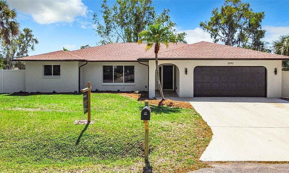 Price Reduced. You wont get these upgrades for this price. Discover a rare gem of a dream home in this fully renovated residence. With 1827 sq ft under air, 3 full bedrooms (and an additional room/nursery/extra closet/office attached to the master), 2 bathrooms, a 2-car garage, and a stunning renovated swimming pool, this property offers the perfect blend of luxury and comfort. Enhanced with all-new hurricane impact windows and doors, along with a delightful fenced-in backyard, the home provides both security and tranquility. Situated on an oversized corner lot backing up to a serene lake, privacy and scenic views are guaranteed. Step inside to witness a complete transformation featuring brand-new kitchen cabinets with sleek quartz countertops, and stainless steel appliances. Both bathrooms completely renovated top to bottom. Luxurious vinyl plank flooring runs throughout the house, complemented by newly installed 6-inch baseboards for a polished finish. Key updates, including new septic and plumbing in 2021, a roof as of September 2017, and an updated electrical panel in 2018, ensure functionality and peace of mind. Don't let this opportunity slip away to make this meticulously renovated property your home, where contemporary style harmoniously meets comfort in a serene and private setting.