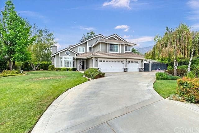 SPLISH SPLASH into summer! Absolutely gorgeous POOL/SPA home in highly desirable upper Yucaipa. 5 bedrooms and 3 bathrooms with one bedroom located on the main floor. Tile entry into high vaulted ceilings and gorgeous formal living room with stunning rock fireplace. Formal dining with oversized window looking out into the private backyard and located just off the kitchen - perfect for entertaining. Granite kitchen countertops, center island and eat-in kitchen also overlooking the pool/backyard. Cozy family room located off kitchen with charming brick fireplace, built in cabinets and windows offering more natural light. Upstairs master bedroom with French doors leading out to the private balcony overlooking the park-like backyard. Master bathroom with his and her sinks, separate tub/shower and walk in closet. 3 more good sized bedrooms located upstairs with hall bathroom and linen storage galore. Step outside onto the private patio with built in BBQ, gated sparkling pool/spa and beautiful landscape. Enjoy a game of basketball on the padded court with a refreshing drinking fountain or relax in the tranquil garden area. Oversized RV Parking and plenty of room for animals, toys or storage. Individual inside laundry room and 3 car attached garage. Circular driveway and fabulous curb appeal. Location Location Location! Welcome Home!