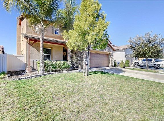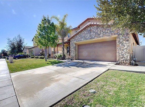 Beautiful Two Story 4 bedroom 3 bath home located in The Fairways of Beaumont. This 2332 square foot home features an open, flowing floorplan, Amazing mountain views and a designer touch with upgrades at every inch of the home. As you enter the home you are met with stunning wood floors, High ceilings,custom paint scheme, to the left is a large bedroom with oversized closet. The full bathroom complete with wood flooring and a shower/ tub enclosure is directly next to the bedroom with a built-in linen closet in the hallway. As you continue down the entry hall, you have the Laundry room to the right. Further down and to the left of the entry way is the Formal Dining room, just beyond that you enter into the Family room and Kitchen. The family room features a stunning fireplace with custom wood and stone accents, wood floors, upgraded wood blinds and entertainment area that flows directly into the kitchen. The kitchen features a large, eat in area, beautiful white cabinets with ample storage, Granite counter tops, white appliances and Pantry with the access to the 2 car garage. Upstairs to the right is the master bedroom with private bathroom featuring dual sinks, a soaking tub and walk in shower, and large walk in closets. The additional 2 oversized bedrooms and 3rd bathroom is located at the end of the hallway. The backyard is perfect for entertaining, complete with stamped concrete, raised planter beds, grass play areas and vinyl fencing.
