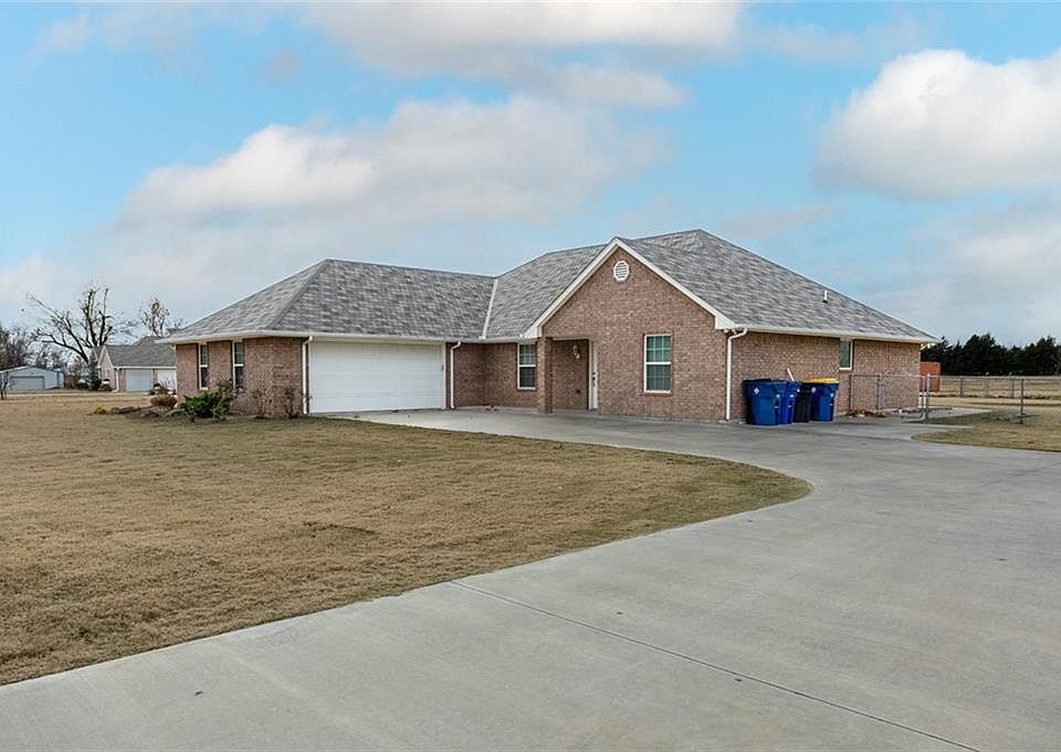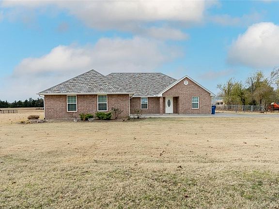 BACK ON MARKET!! Buyer failed to perform to contract. Their loss, YOUR GAIN! Step into this custom built 3 bed/2 bath brick home on 2.5 wide open acres and enjoy the serenity of country living just outside of town! Build your own shop or store your boat, atv's or motorhome! The open living and split floor plan is a great setup along with a flex space suitable for office or extra living/dining. Granite countertops, stainless appliances & gas stove in kitchen, large laundry room and the home just had brand new carpet installed throughout along with some fresh paint. Master closet has built-ins and a storm/safe room! It's move-in-ready! The third bedroom has back patio access. This property comes with it's own storage container that's grandfathered in and will stay. Choctaw schools!