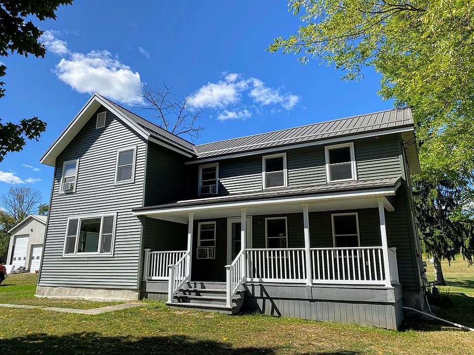 Beautifully completely remodeled 2 story home boasting over 1700 finished sq ft 2 bedrooms and 2 full bathrooms; upgrades include all new kitchen with quartz countertops, all new sheet rock, new paint, all new radiant floor heat, double pane windows, new roof, new vinyl siding, and so much more, home is situated on just over 11 acres and also offers a huge detached 3 car garage with storage above, make your move today!