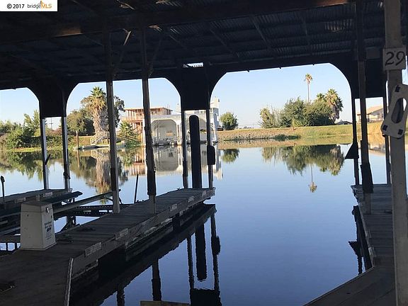 Beautiful Delta resort living. Waterfront condo with over 30K in recent upgrades. Located in a gated community with stunning views of the Marina that can be seen from the kitchen, living room and master bedroom that is privately located upstairs. This 2 story 2 bedroom 2 bath unit is an open floor plan that is bright and airy featuring an updated modern kitchen with quartz counters, back backsplash and stainless steel appliances, bathrooms with new vanities, walk in shower in the lower bathroom, can lighting, ceiling fans and has hardwood floors. This unit includes an assigned covered boat dock/slip, 2 covered parking spaces and storage space. Amenities includes a tennis court, club house and community pool that has solar panels.
