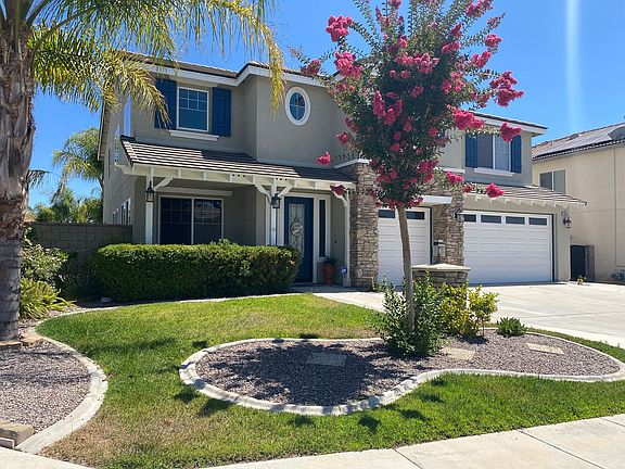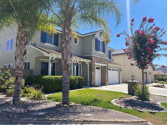 Upgrades galore! This Stunning Executive Home, in Wildomar/Murrieta Area, Boasts 5 Bedrooms, 4 Baths, plus a 3-Car Garage. High Ceilings, Open & Bright Entry w/ a spacious Living Room, formal Dining Room room w/custom features. The Family room has built-in display Cabinets and a cozy Fireplace. Open to the Gourmet Kitchen w/Granite Countertops, you'll notice Stainless Steel Appliances, including Oven, Dishwasher & a built-in microwave. This Kitchen also has extra Storage needs! Walk up the Gorgeous Wood Staircase Upstairs to the spacious 2nd Floor. Mom will enjoy her Large Master Bedroom with spacious Walk-in Closet. The Master Bathroom has Dual Sinks, a Large Luxurious Bathtub and Large Separate Shower, all Customized, as do the other Bathrooms in this Home. Other features of this Home include: Lovely Wood Flooring throughout the home, Custom Paint throughout, Custom Plantation Shutters, Crown Moulding, LED recessed lights, Ceiling Fans, and Laundry Rm. For SUMMER FUN, go out to your spacious rear yard with low maintenance landscape. This Private Sanctuary is perfect for your Birthday Parties & Barbecues! Lush Palm Trees, Hardscaping & a fun concrete space for the kids. Close to Shopping & Freeways, this Home won't last