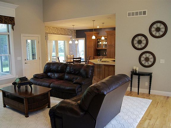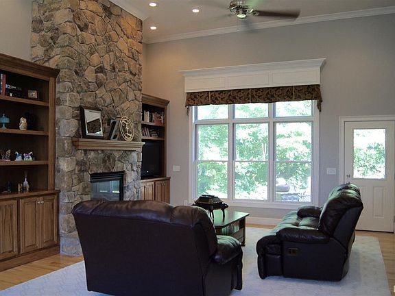 Enjoy lake living at Greystone Subdivision in this beautiful home built in 2005. Welcomed by a spacious open concept with a formal dining area and living featuring hardwood floors throughout. Focal point stone wall fireplace and custom built-ins offer a great living and entertaining area open to the large kitchen and breakfast area. Nearby master bedroom suite is located nearby featuring trey ceilings, master bath with jetted tub and stand up shower plus access to the backyard from the bedroom. Additional bedrooms located on main level with jack-n-jill bath and walk in closets. Full finished basement offers an oversized family room with fireplace and adjacent rec area plus two additional bedrooms plus a private den. Private backyard with screened in porch, open deck and pavered patio. Plus room for an in-ground pool! Nearby Chapman Lake pier, perfect for summer time fun.